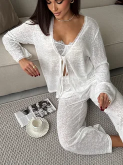 Пижама сексуальная с шортами и халатом на подарок 4в1