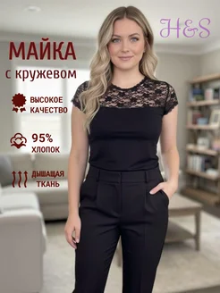 Майка с кружевом под пиджак бельевая черная