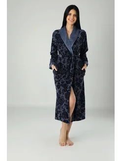 Банный халат жаккардовый синий