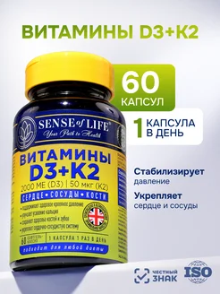 Витамин Д3 К2 2000 для женщин и мужчин, 60 капсул