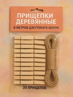 Набор для декора 30 деревянных прищепок + 6 метров бечевки