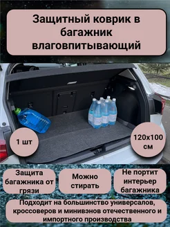 Коврик автомобильный в багажник влаговпитывающий 120х100 см