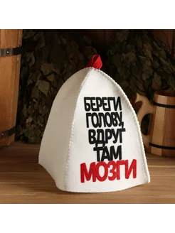 Шапка для бани и сауны «Береги голову вдруг там мозги»