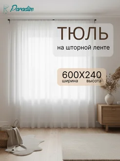 Тюль в гостиную и спальню вуаль белая 600х240