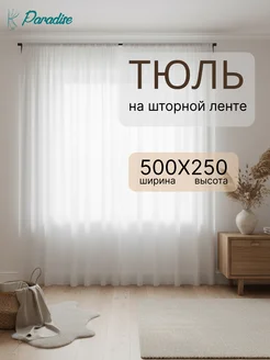 Тюль в гостиную и спальню вуаль белая 500х250