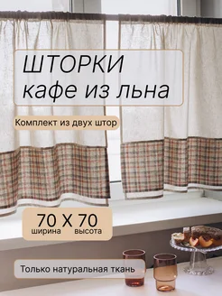 Комплект шторы кафе на кухню короткие из льна 140х70