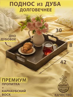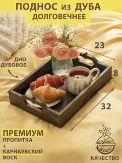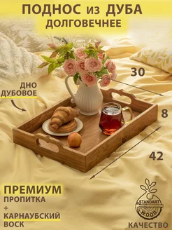 Поднос деревянный декоративный из дуба большой с ручками