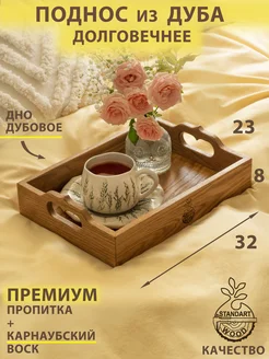 Поднос деревянный декоративный из дуба маленький с ручками