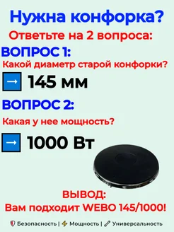 Конфорка чугунная электрическая WEBO штырь 145мм 1000 Вт