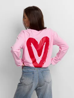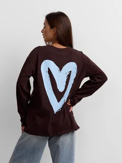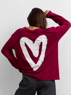 Лонгслив оверсайз базовый с принтом пинтерест новогодний