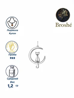 Серебряная подвеска Кошка на луне