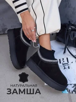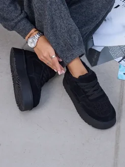 Полуботинки зимние на платформе с мехом из натуральной замши