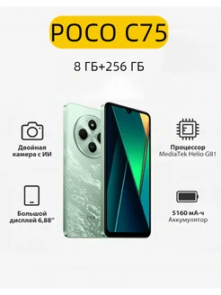 Смартфон Xiaomi POCO C75 8 ГБ 256 ГБ, зеленый