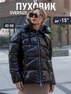 Пуховик зимний с капюшоном, куртка теплая оверсайз короткая