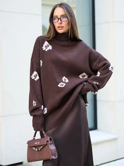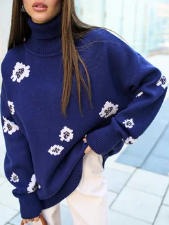 Свитер с горлом оверсайз удлиненный теплый джемпер