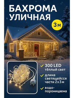 Светодиодная бахрома для улицы желтый 300 LED