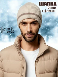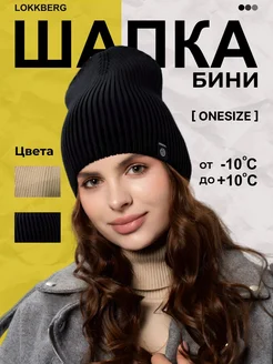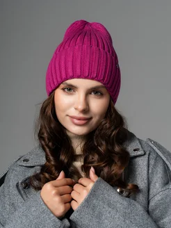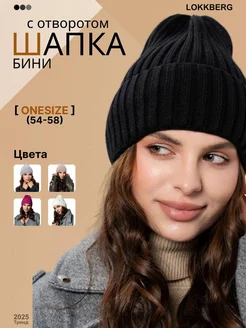 Шапка зимняя в рубчик демисезонная вязаная бини с отворотом