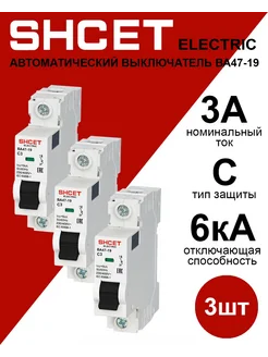 Автоматический выключатель ВА47-19 1Р 3А хар С (3шт)