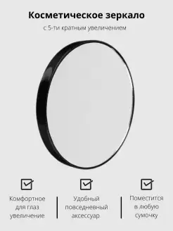 Зеркало косметическое, на присосках. 5 кратное увеличение