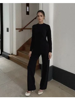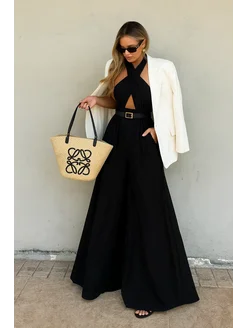 Комбинезон вечерний с брюками палаццо с открытой спиной