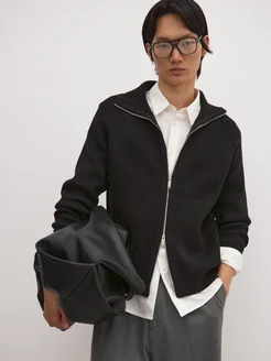 Свитер на молнии с горлом вязаный теплый оверсайз old money