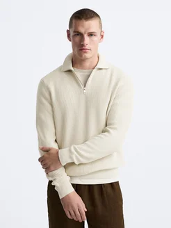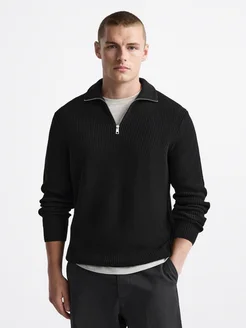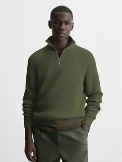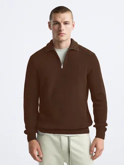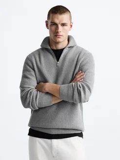 Свитер с горлом на молнии вязаный теплый полузамок old money