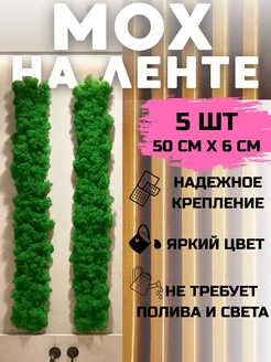 Комплект лент стабилизированного мха ягеля на скотче, 5 штук