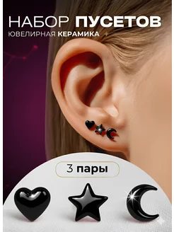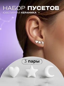 Серьги гвоздики из керамики в форме сердца 5 мм