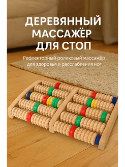 Массажёр для стоп и ног деревянный роликовый с шипами