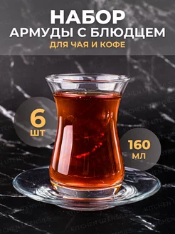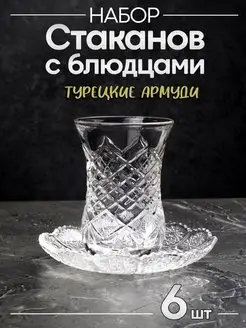 Блюдца под армуды для чая, стеклянные на 6 персон