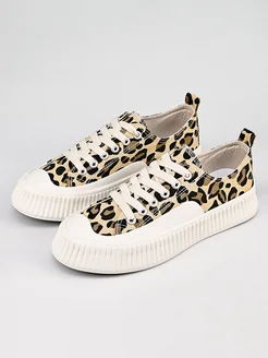 Тканевые летние кеды на платформе леопард