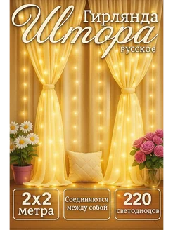 гирлянда штора занавес желтая 2х2 на окно Led