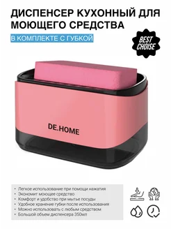 Диспенсер кухонный, для моющего средства с губкой, розовый