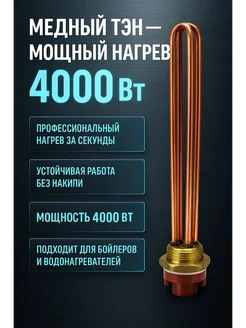 ТЭН 4000 Вт медный с термостатом для бойлера и котла