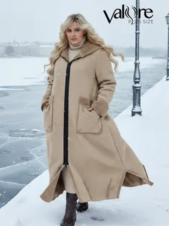 Дубленка еврозима с капюшоном. Демисезонное пальто длинное