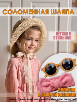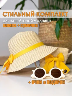 Комплект детская соломенная шляпа с бантом и сумочкой + очки