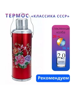 Термос для чая 2 литра "классика СССР" со стеклянной колбой