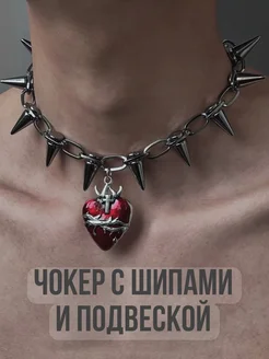 Чокер с Шипами "Пылающее сердце с Терновым венком" y2k