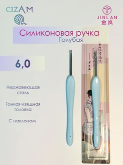 Крючок для вязания с силиконовой ручкой, голубой 6,0 мм