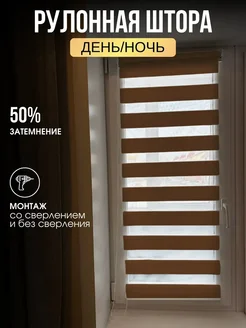 Рулонная штора коричневая День-ночь 121x200