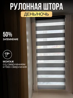 Рулонная штора антрацит День-ночь 73x200