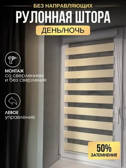 Кассетная рулонная штора бежевая День-ночь 69х140 лев уп