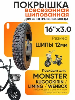 Покрышка шипованная для электровелосипеда Monster, 16*3.0