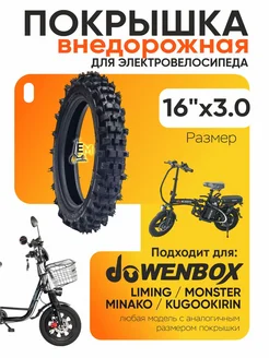Покрышка внедорожная для электровелосипеда Wenbox, 16*3.0