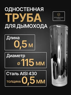 Труба одностенная для дымохода 0,5 м D 115 мм (0,5 430) нерж