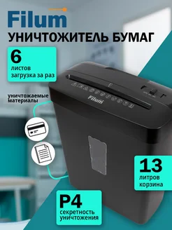 Шредер для бумаги офисный 13 литров 6 листов (секр. Р-4)
