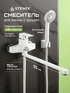 Смеситель для ванны с душем с длинным изливом белый