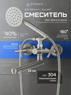 Смеситель для ванны с душем с коротким изливом