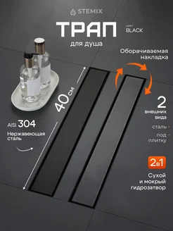 Трап для душа под плитку с гидрозатвором 400 мм, черный
