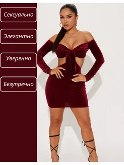 Платье бархатное с открытыми плечами